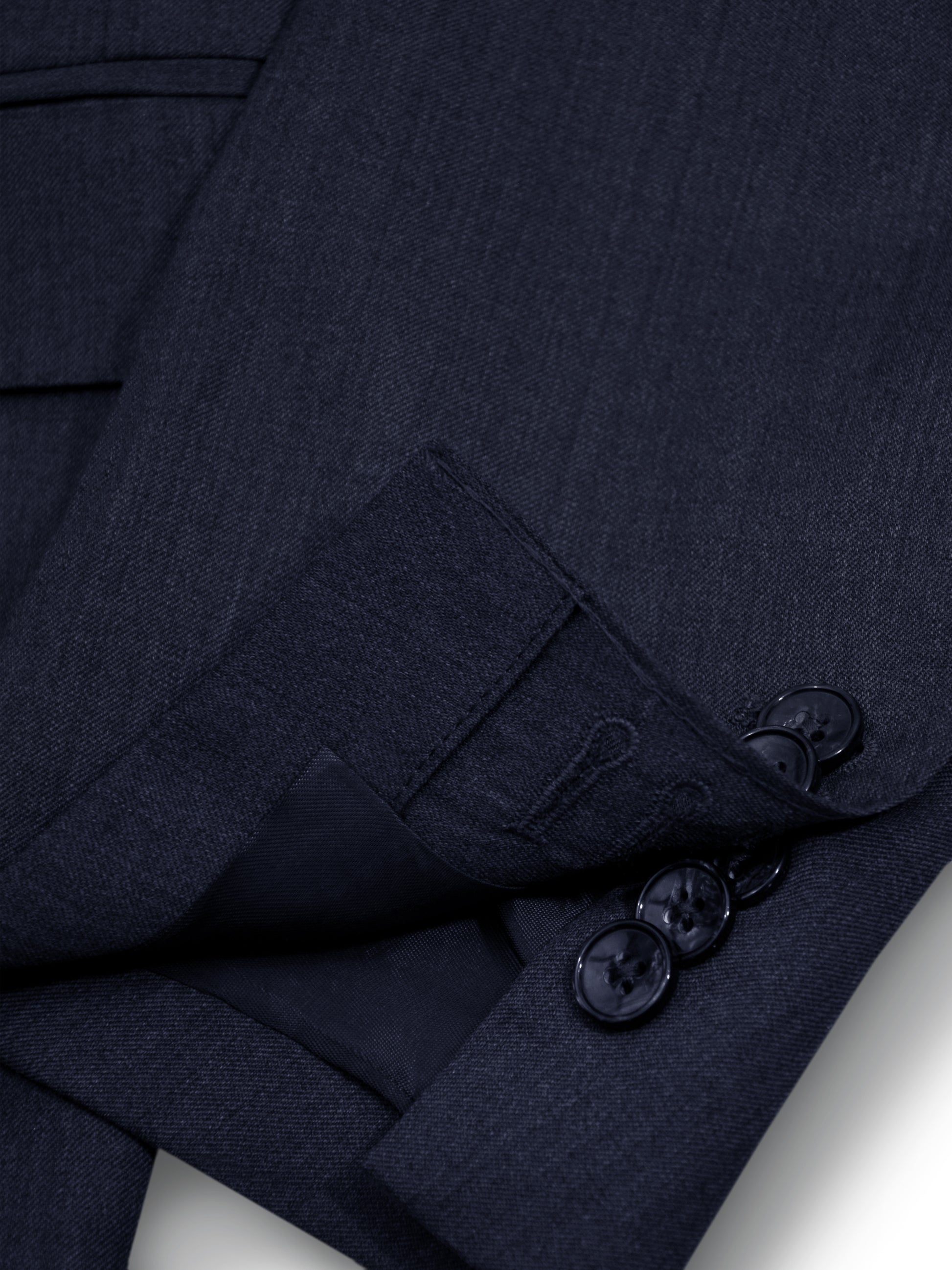 Ce costume présente une coupe classique avec un revers cranté, une fermeture à deux boutons, des poignets style chirurgien et des épaules structurées, le tout parfaitement ajusté pour une silhouette élégante et raffinée. Rehaussez votre style avec ce costume incontournable.
