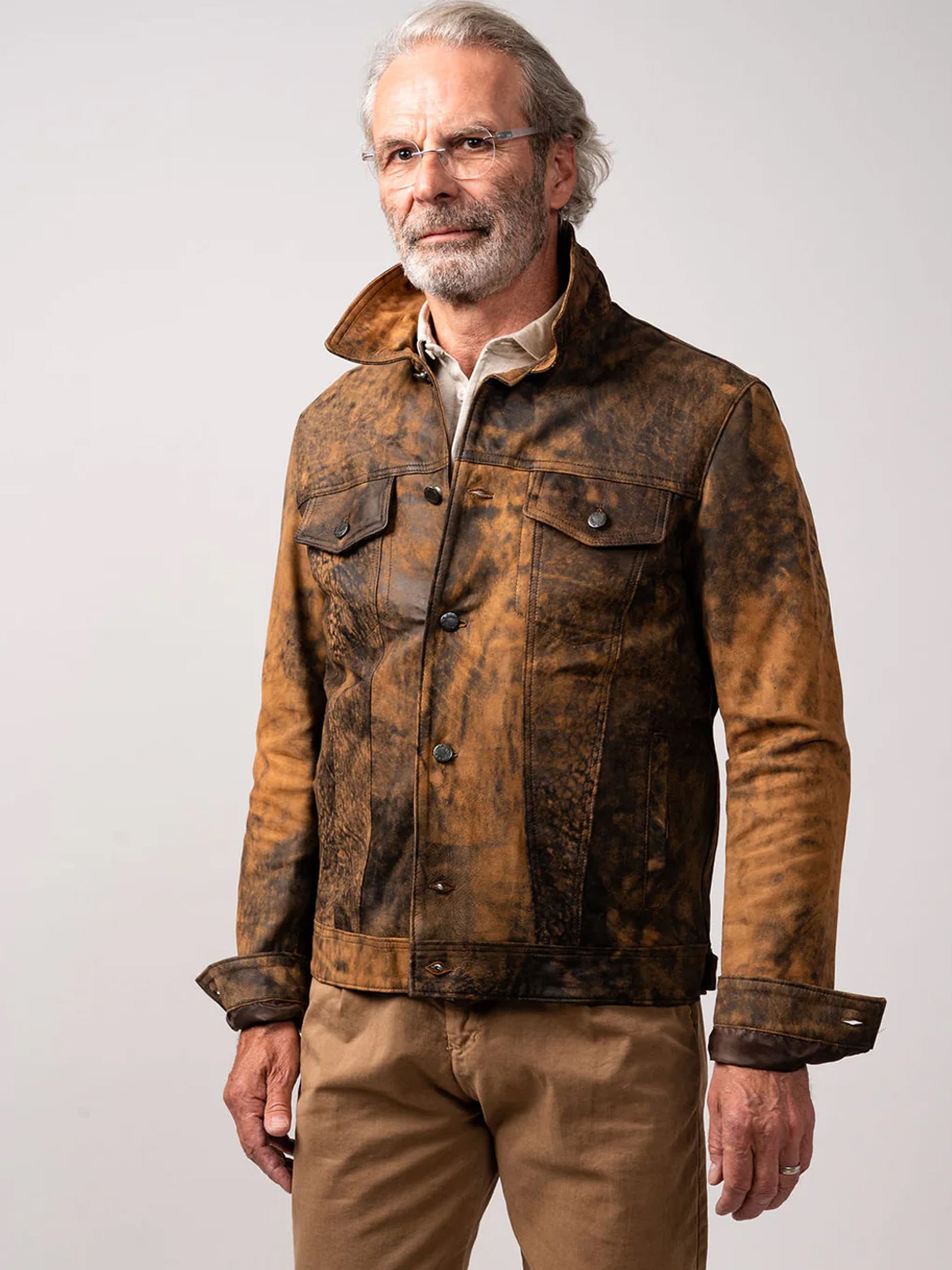 Cette veste de sport est confectionnée en cuir de première qualité, gage de durabilité et de luxe. Le procédé de finition par brûlure ajoute du caractère et de la profondeur au cuir, créant un look unique. Sa riche couleur café-expresso s'harmonise avec de nombreuses tenues, ce qui en fait un ajout polyvalent à votre garde-robe.