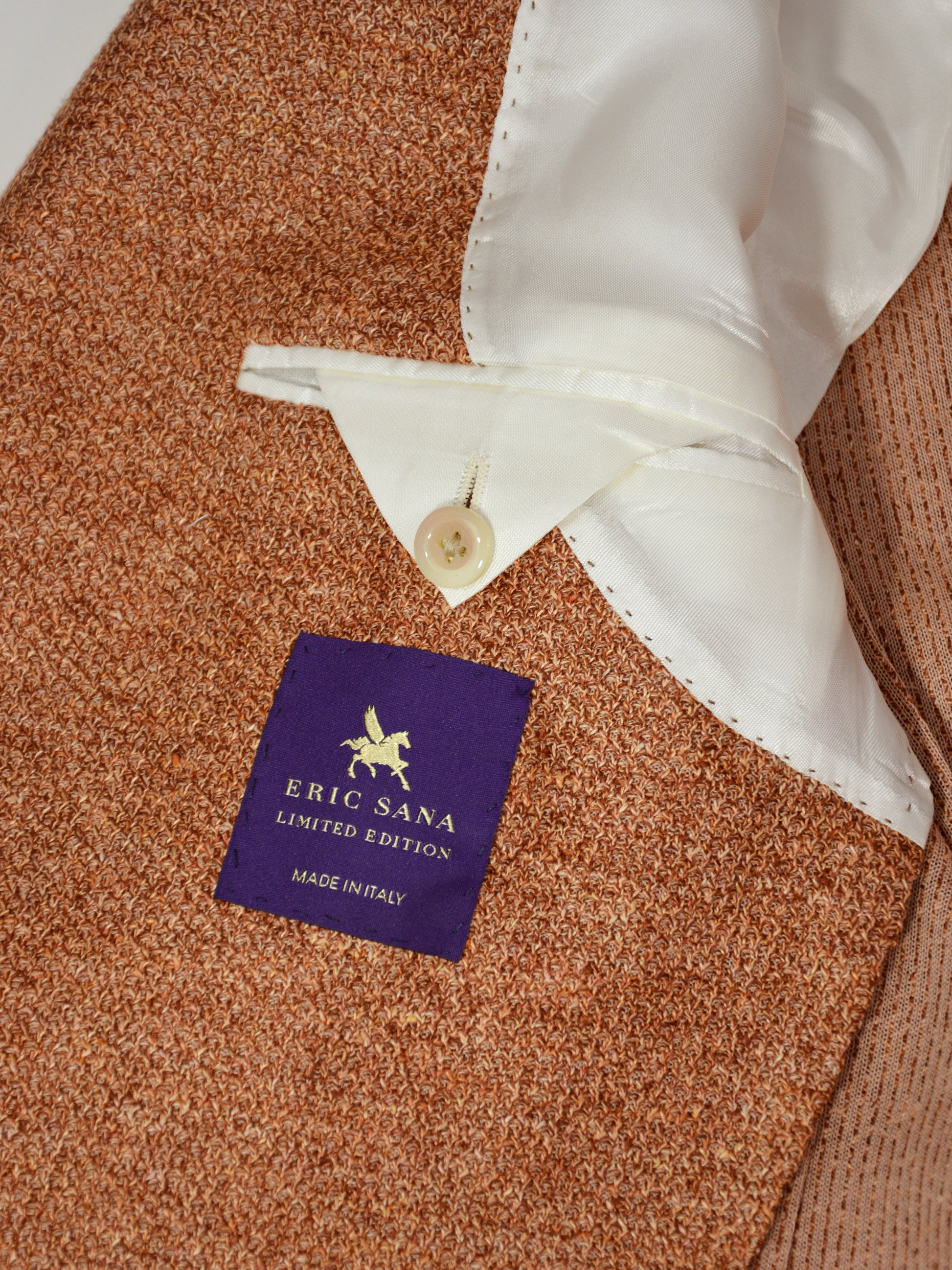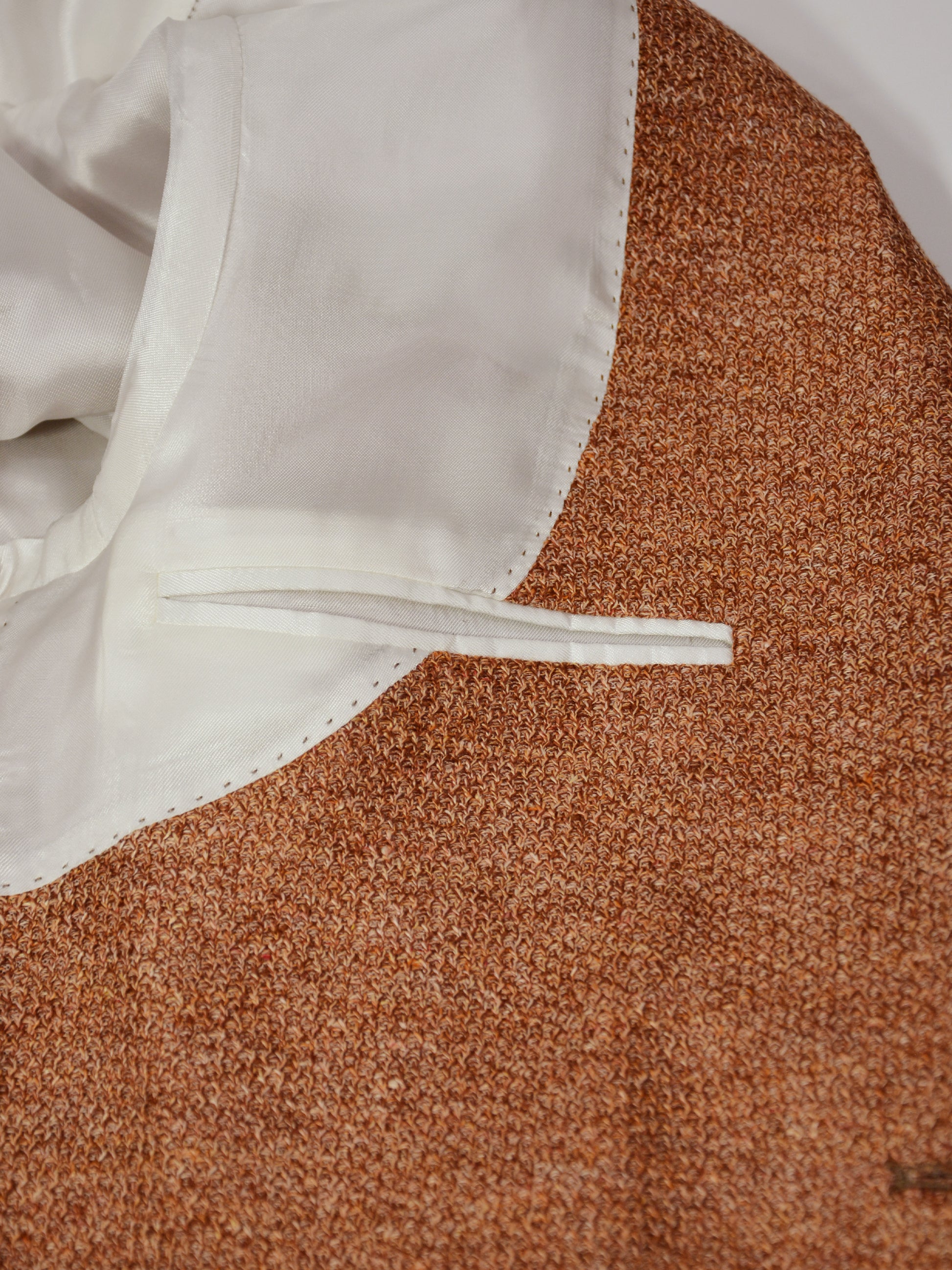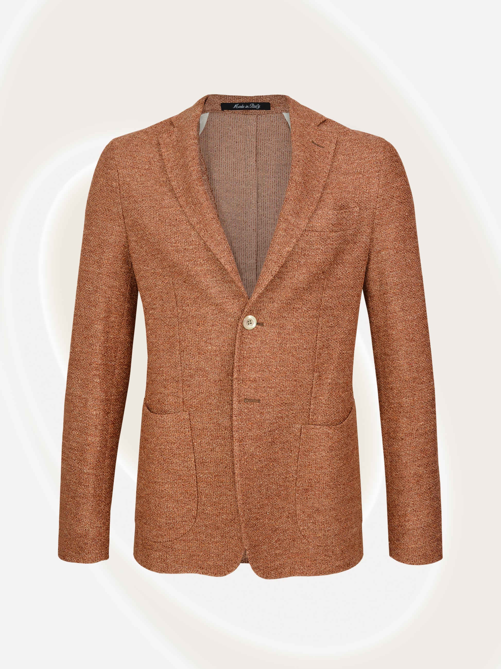 Discover the Giacca Clementi, an Italian-made masterpiece that redefines classic tailoring. This distinguished two-button blazer showcases a graceful notch lapel and luxurious bronze tweed that commands attention in any setting. The thoughtfully engineered fabric blend linen and cotton—delivers exceptional breathability and natural drape, keeping you comfortable whether you're navigating a full day at the office or attending evening events.
