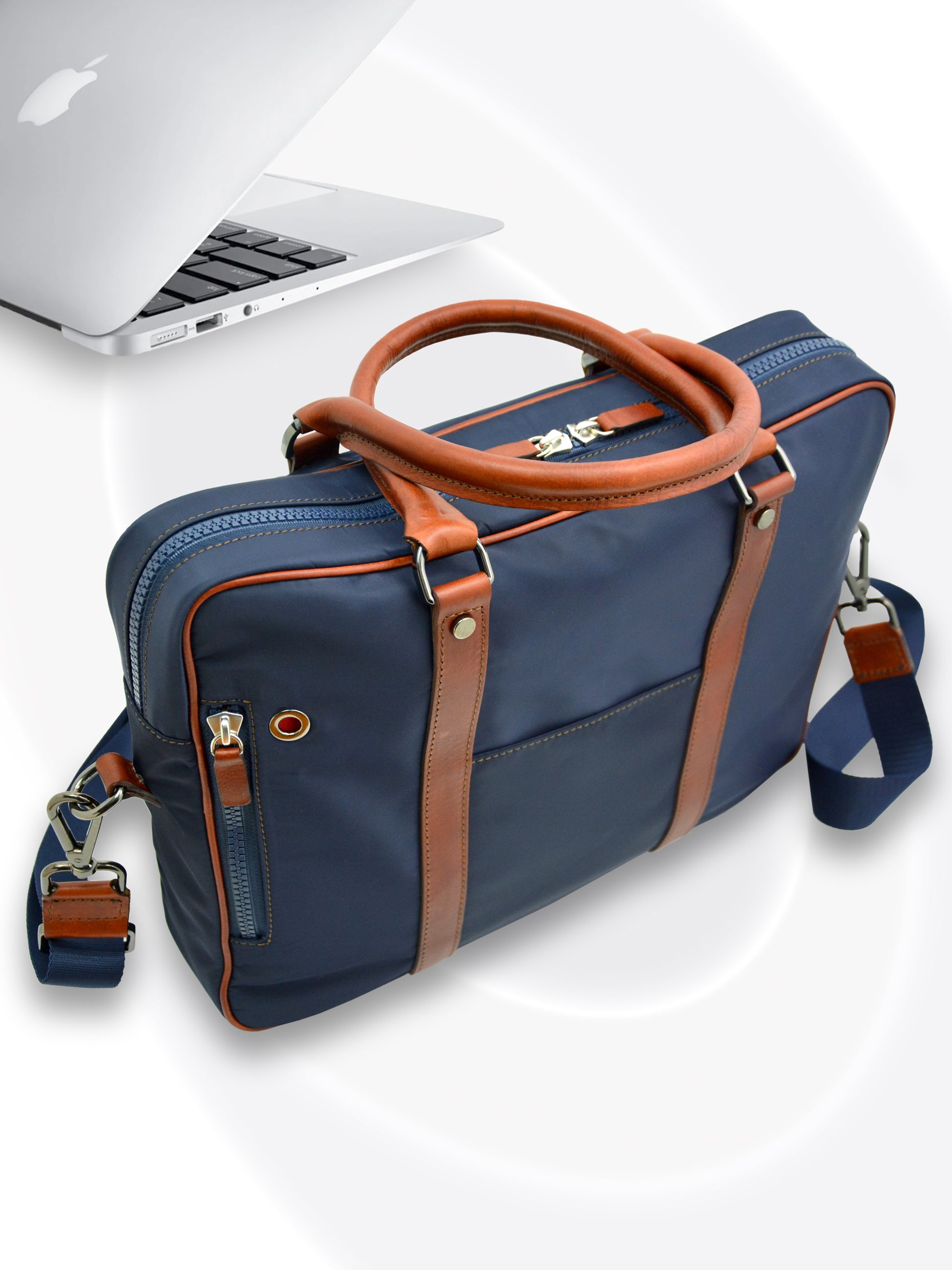 Robuste et élégant, avec une touche d'élégance européenne ! Ce sac pour ordinateur portable est fabriqué en cuir italien de qualité supérieure et en nylon résistant, offrant une protection optimale à votre ordinateur portable lors de vos déplacements. Grâce à son design élégant et à son souci du détail, vous serez assuré(e) et élégant(e) dans tous vos environnements professionnels. Faites confiance à la qualité et au savoir-faire d'un véritable sac fabriqué en Italie.
