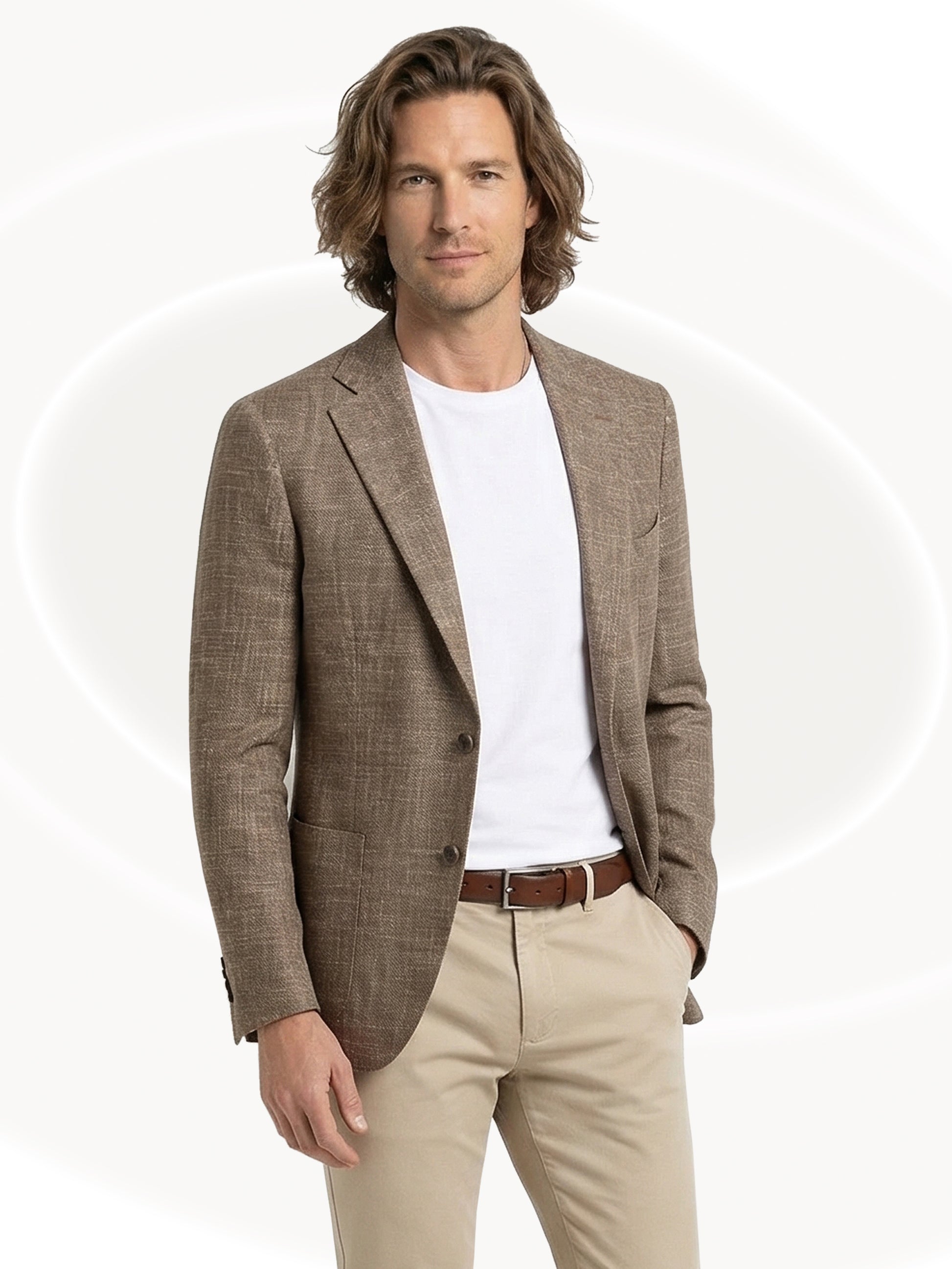 The Giacca Praga Due combines timeless tailoring with premium natural fibres. Crafted from a refined blend of virgin wool, linen, and cotton, this piece offers breathability and durability for year-round wear. The classic three-button front pairs seamlessly with a four-button cuff, delivering refined detail and versatile styling. Perfect for layering or wearing solo, this jacket transitions effortlessly from office to weekend occasions.
