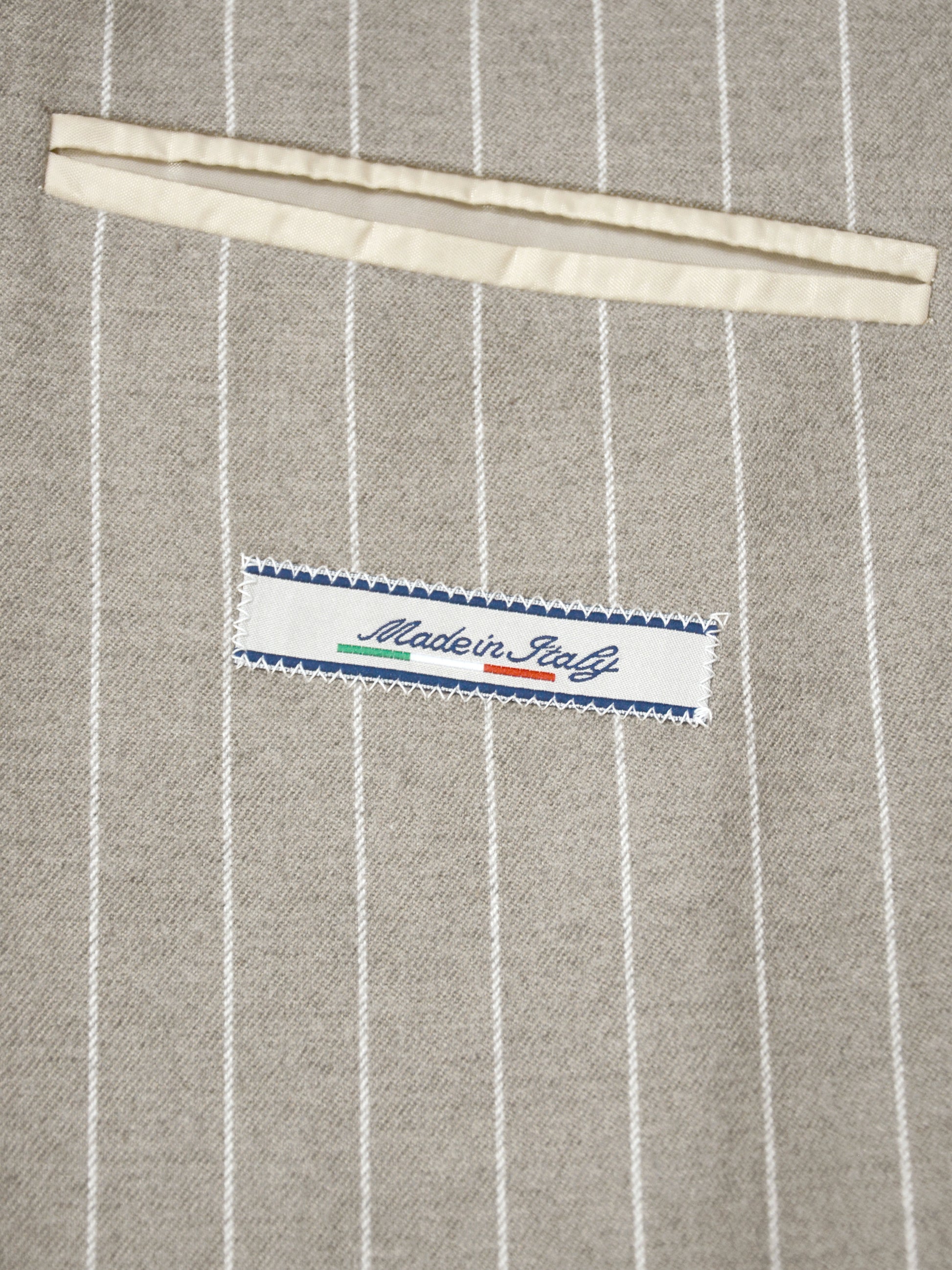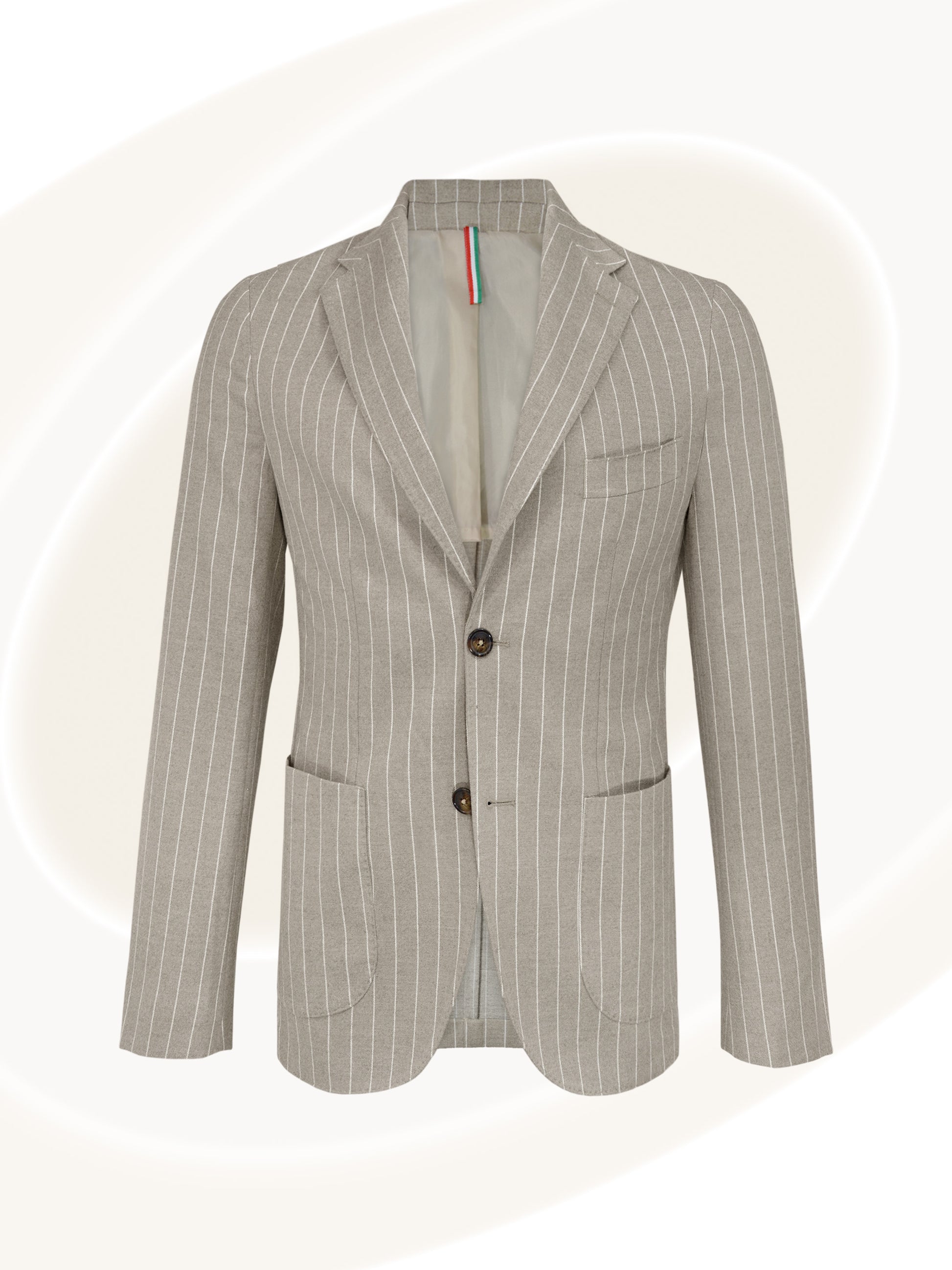 L'artigianalità italiana al suo meglio. Questo blazer Amalfi Stripe è caratterizzato da un mix di lana e poliestere, che ti regala un capo elegante ma resistente da aggiungere al tuo guardaroba. Disponibile in eleganti colori ecru o versatili monsone/blu, è un must per ogni individuo alla moda.