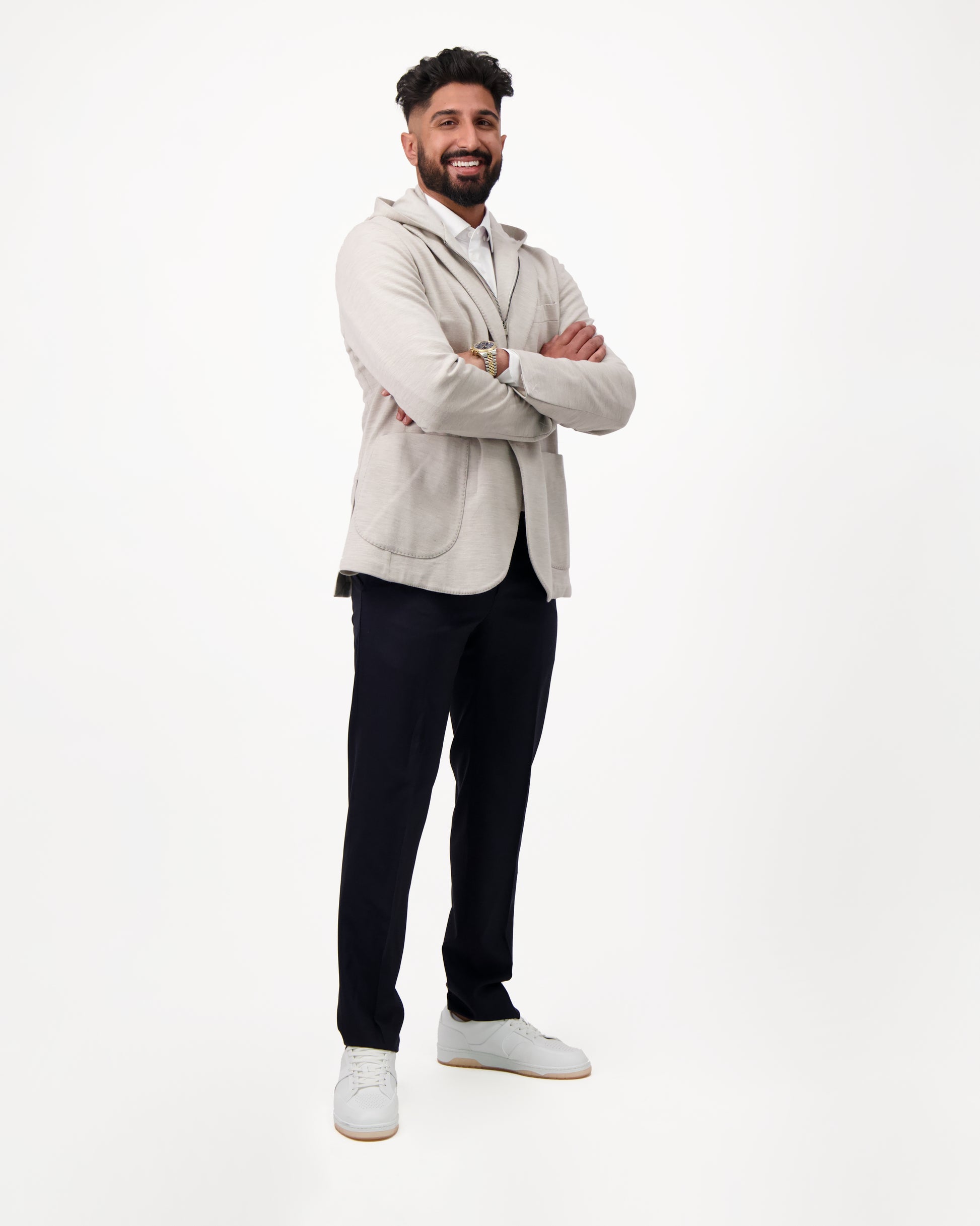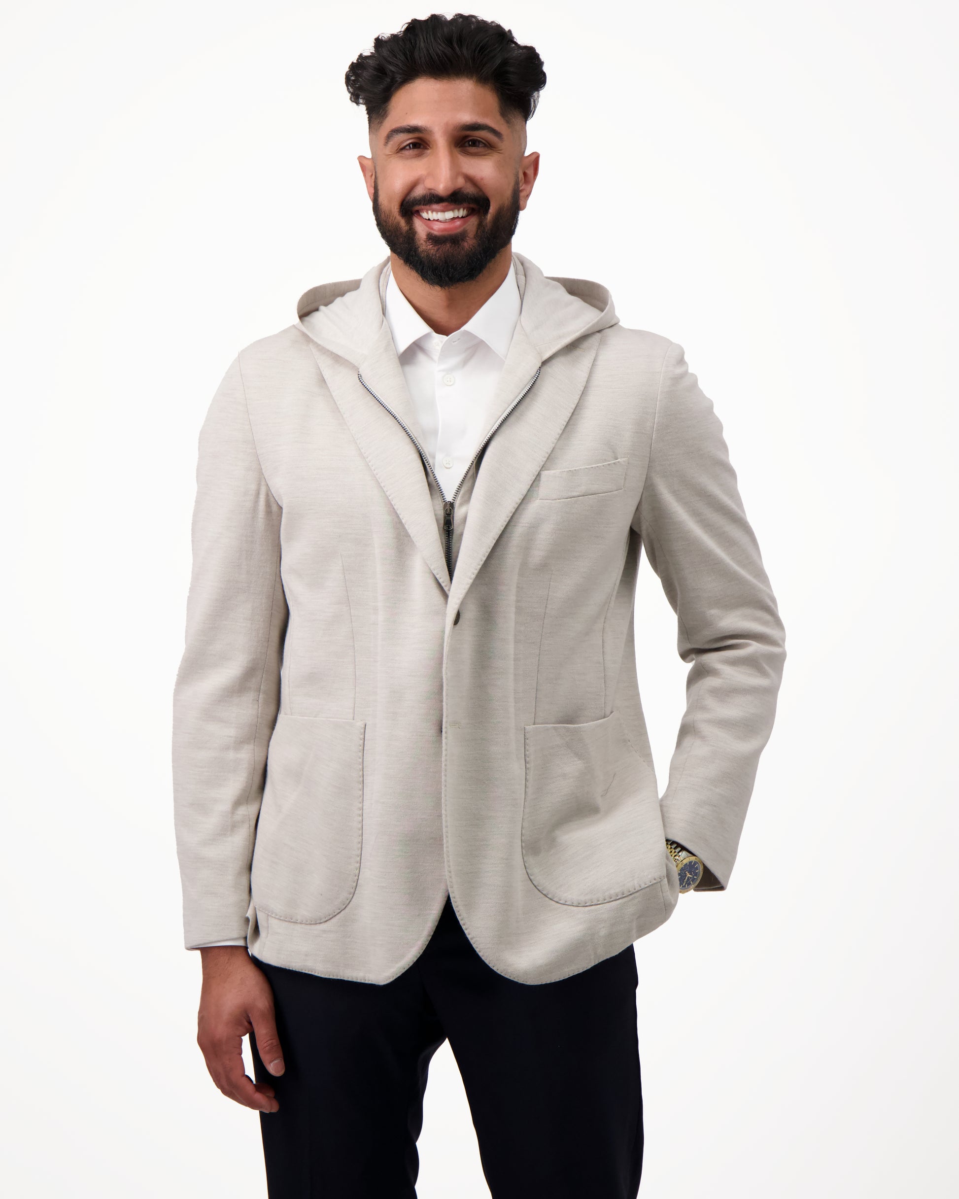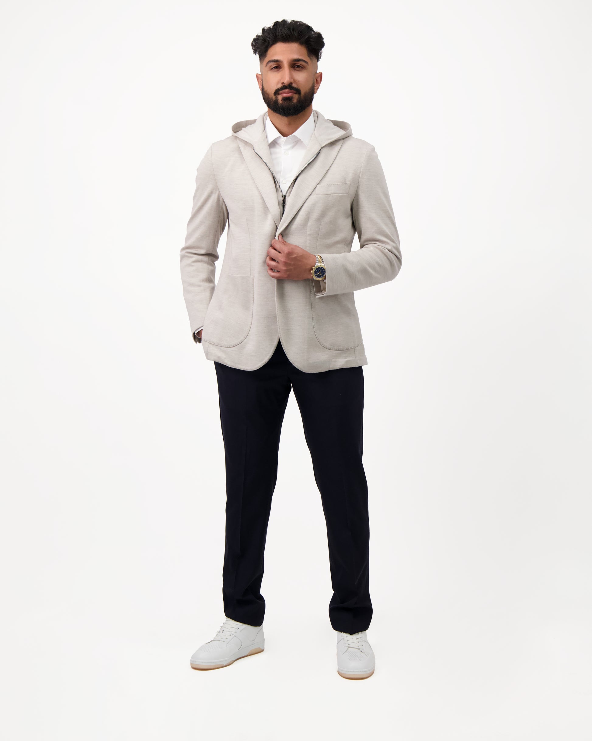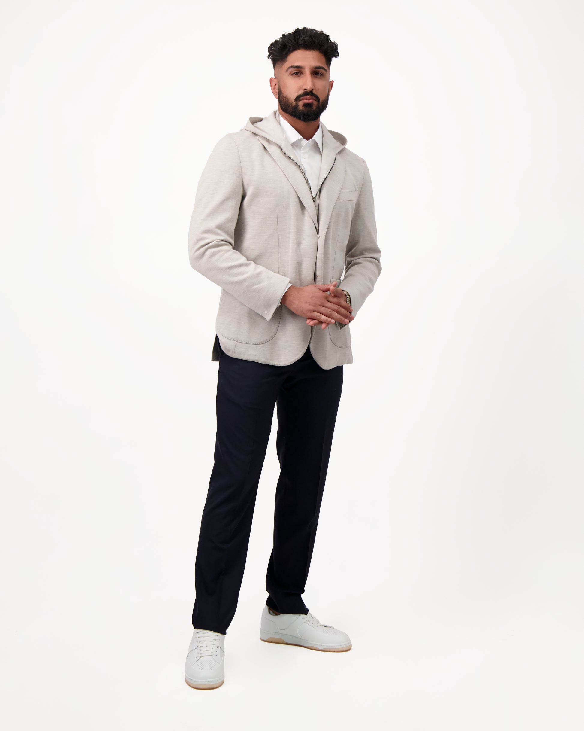 La natura classica e senza tempo della flanella di lana vergine, unita alla caratteristica costruzione destrutturata e alla perfezione sartoriale, suggellano il carattere di eleganza e comfort senza pari di questa felpa con cappuccio executive di Eric Sana.