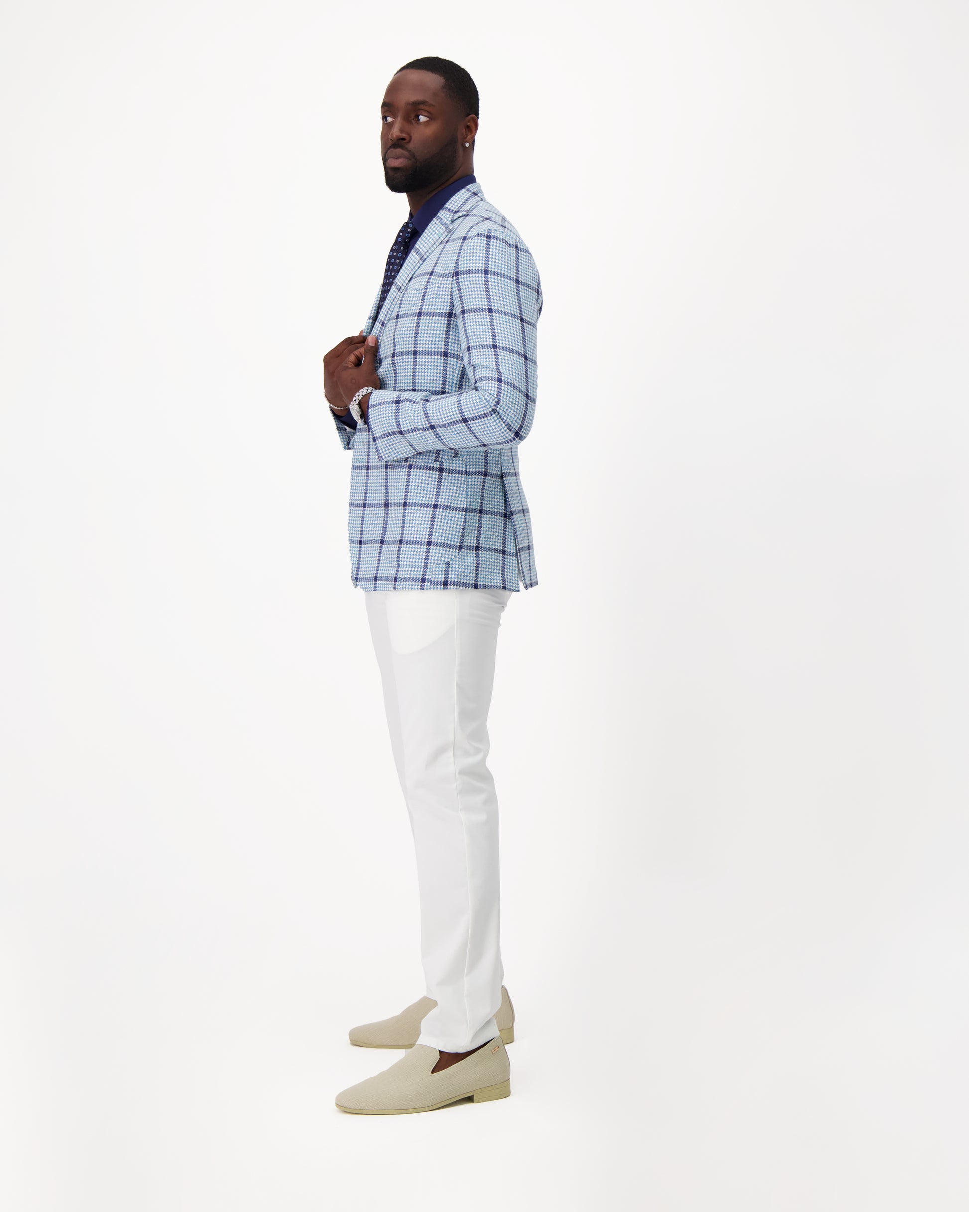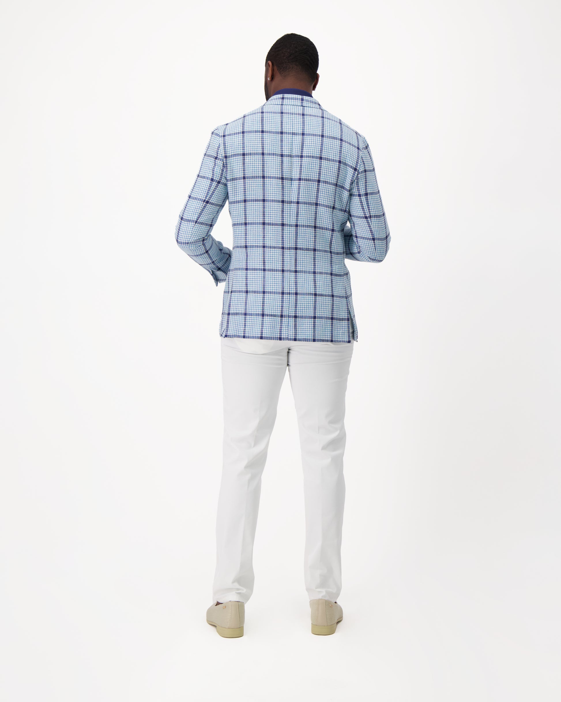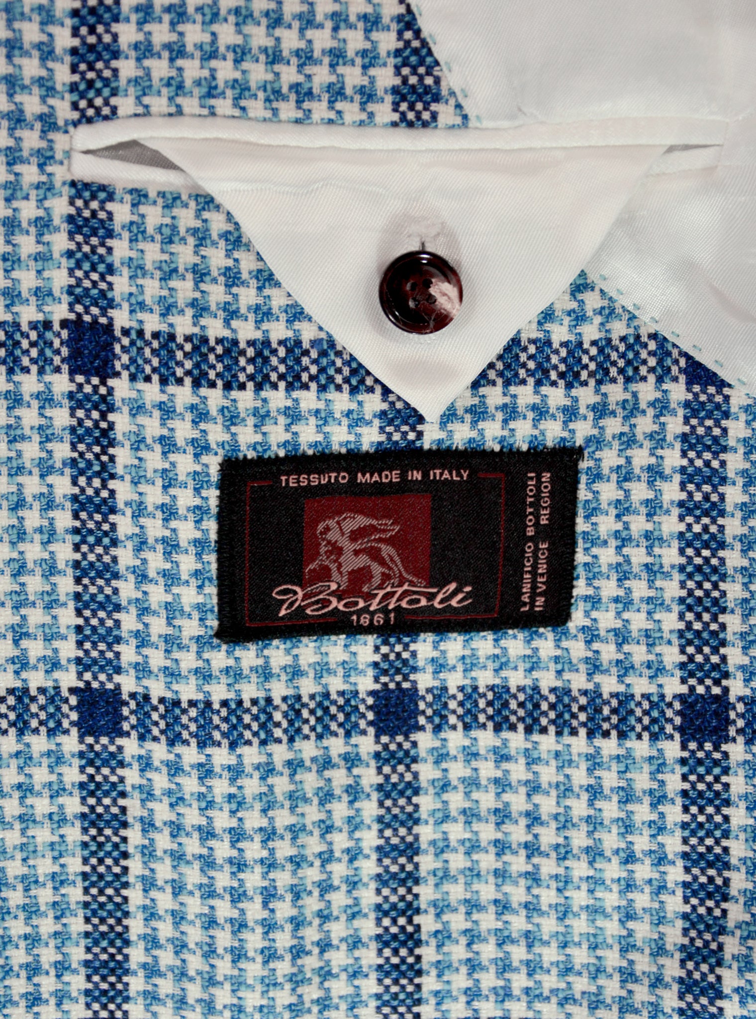 Questo tessuto Bottoli 1861 incarna l'eccezionale artigianalità italiana e la qualità lussuosa in un blazer. Noto anche per la sua lana eccezionale e le fibre vegetali grezze ecologiche, rimane impeccabilmente sostenibile.