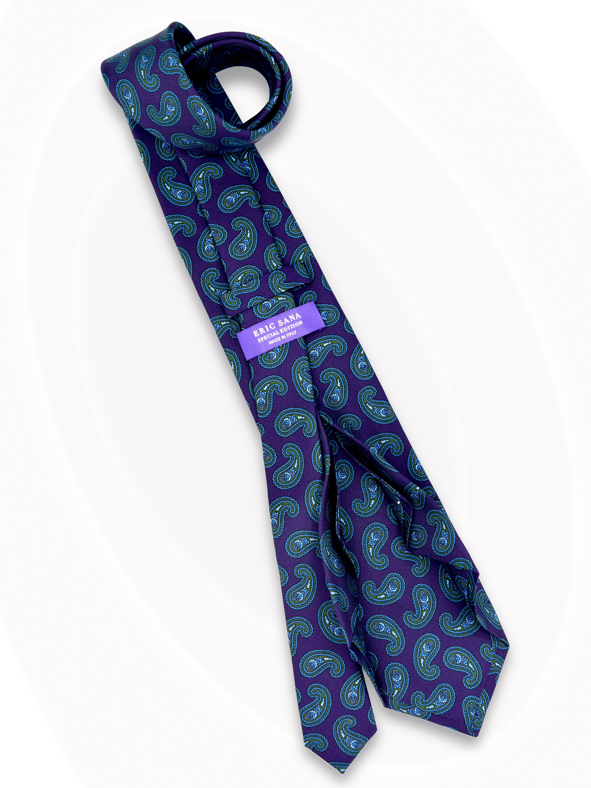 The 7-fold design, means that the tie is made from a single piece of silk folded multiple times, eliminating the need for inner lining. this results in a heavier, more substantial drape and a rich texture. The meticulous craftsmanship is evident in the precise folds and stitching making it a premium accessory for formal or business attire.