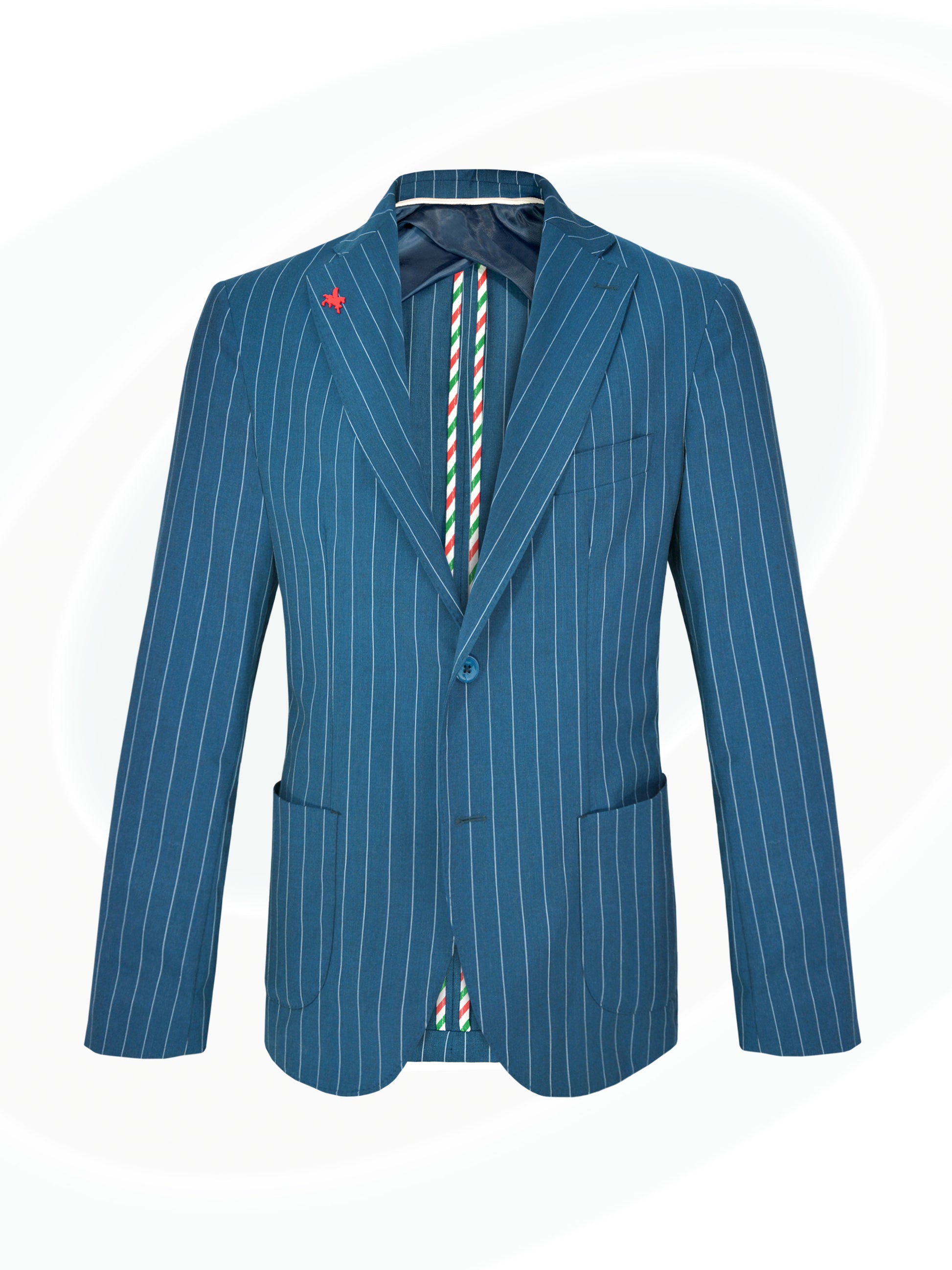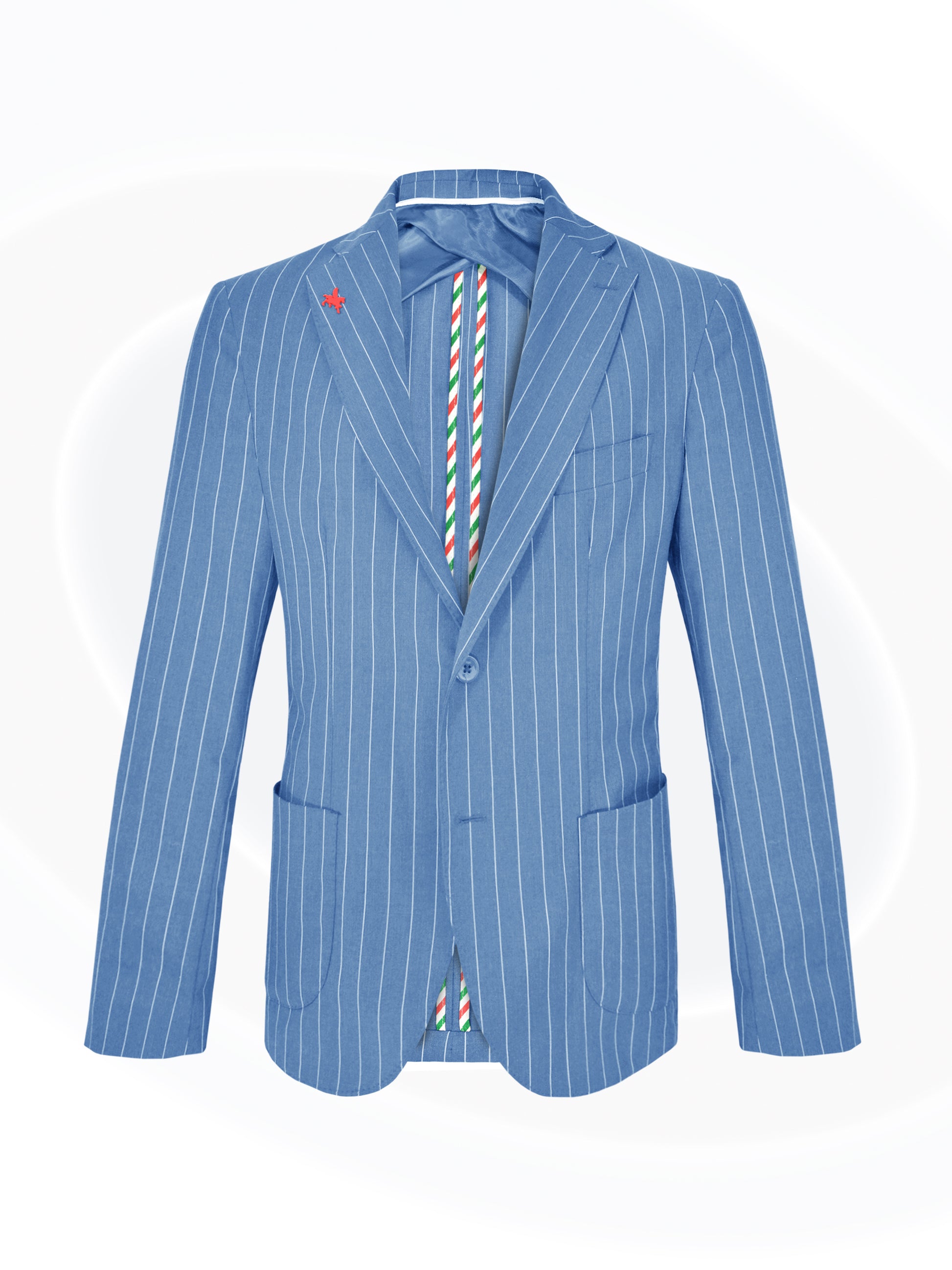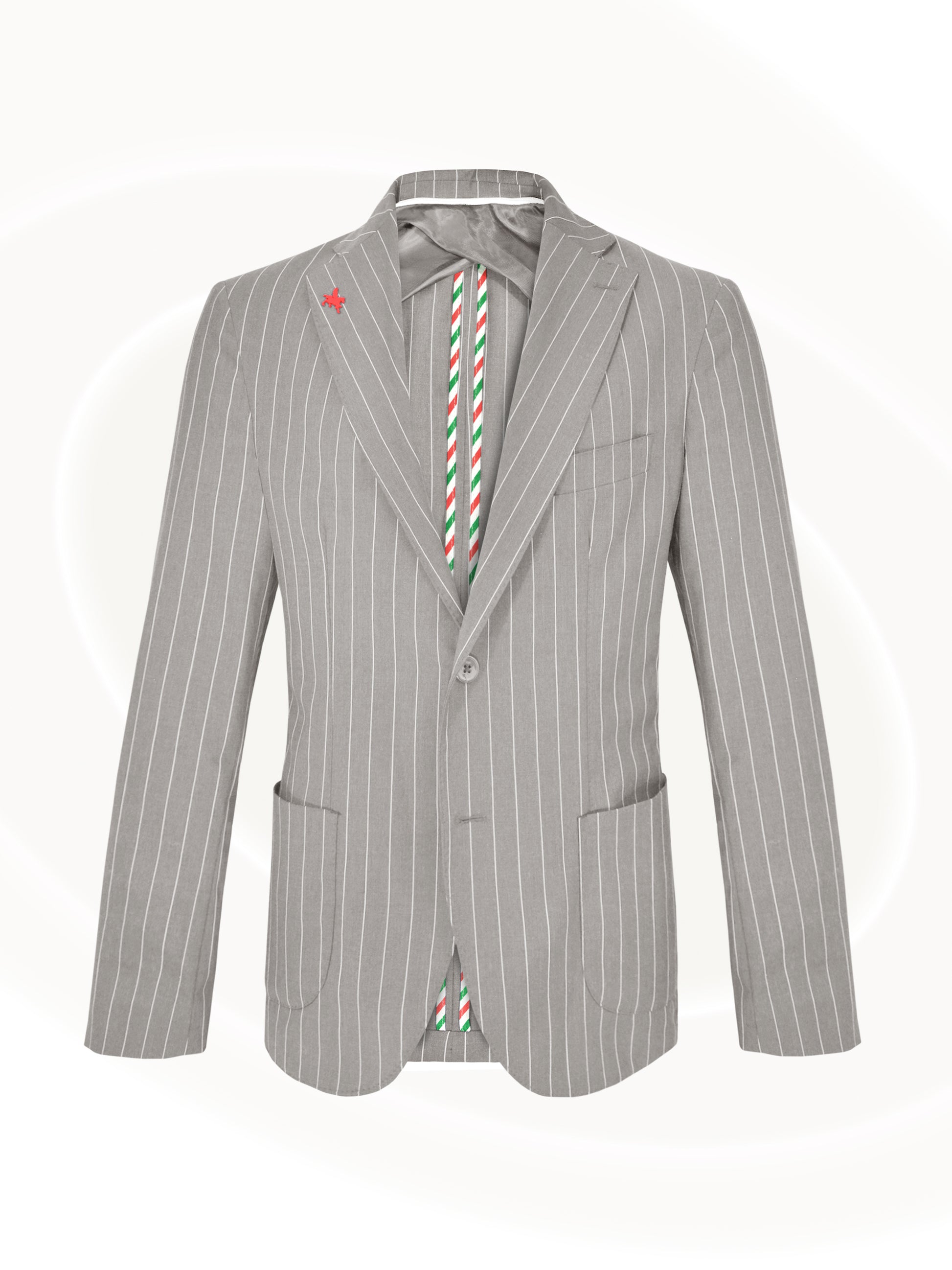 This Classic Pinstripe Hoodie combines traditional tailoring with contemporary comfort. This innovative Italian-crafted piece features the refined elegance of a pinstripe blazer seamlessly integrated with a casual hoodie element.