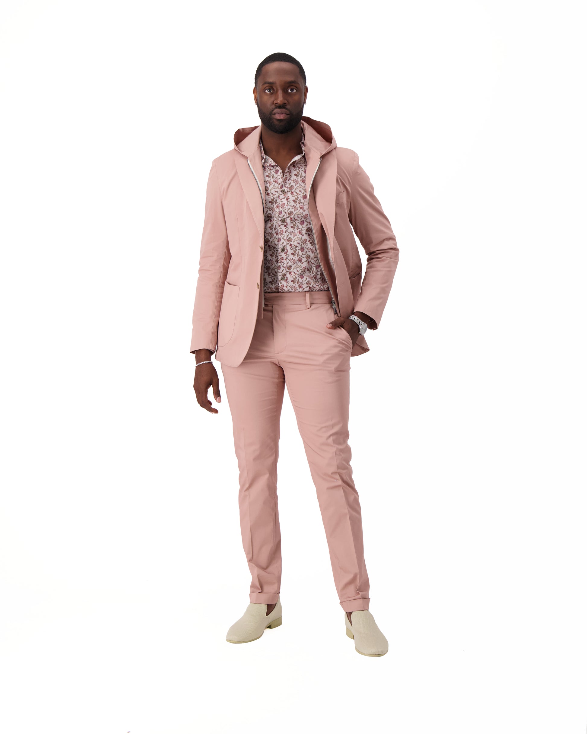 The Cotton Stretch Executive Hoodie is an innovative garment that blends tradition with upscale style . This creation features the signature removable Hoodie-Vest with a zipper detail that easily takes this garment from formal to informal. Perfect for an afternoon cocktail or a breakfast meeting, this Eric Sana Executive hoodie is a wardrobe staple for the man on the move.