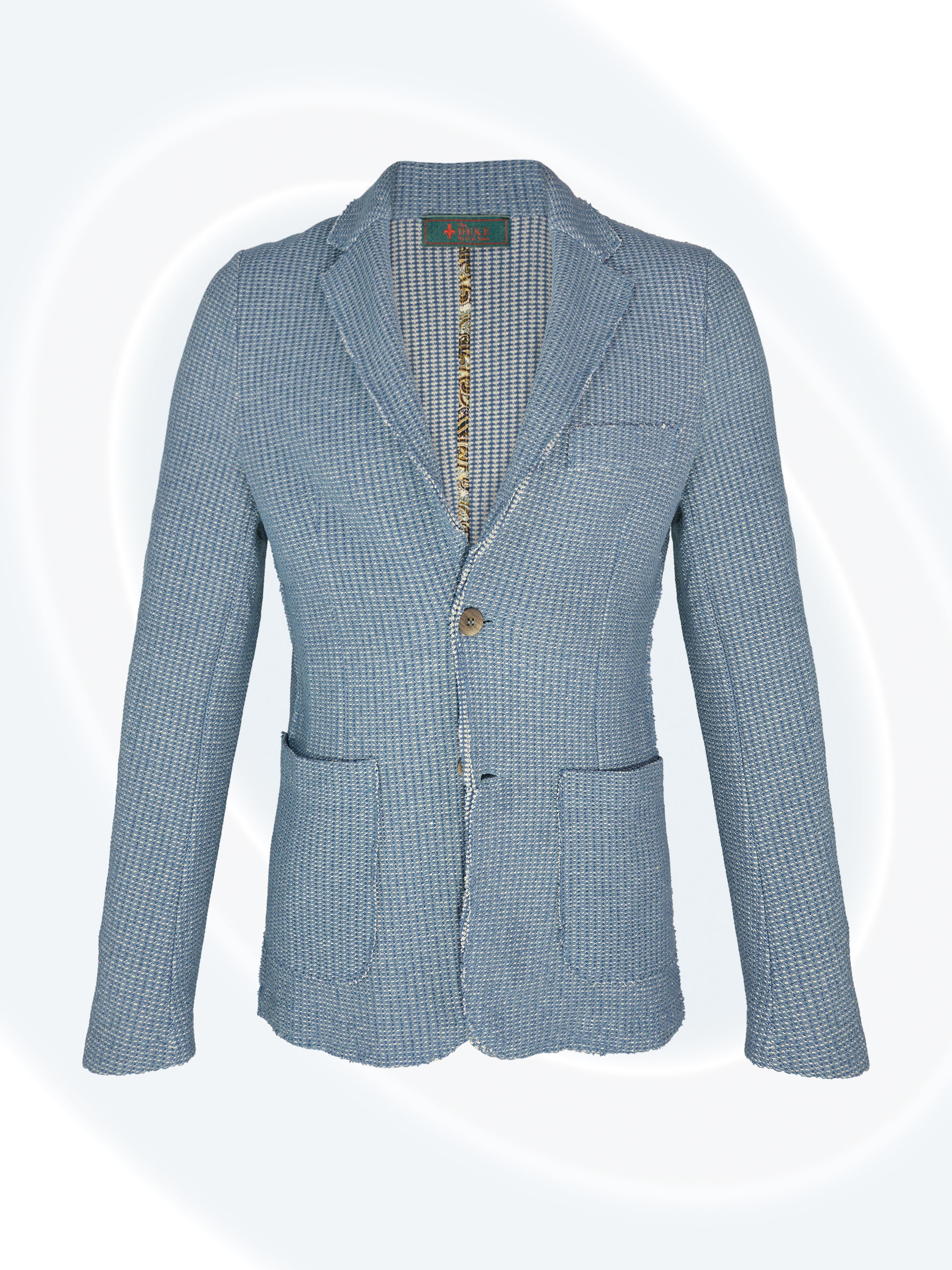 Lightweight Textured Jacket with white woven threads, giving it a slightly mottled or heathered appearance. Single breasted with notch lapel casual unstructured cut.