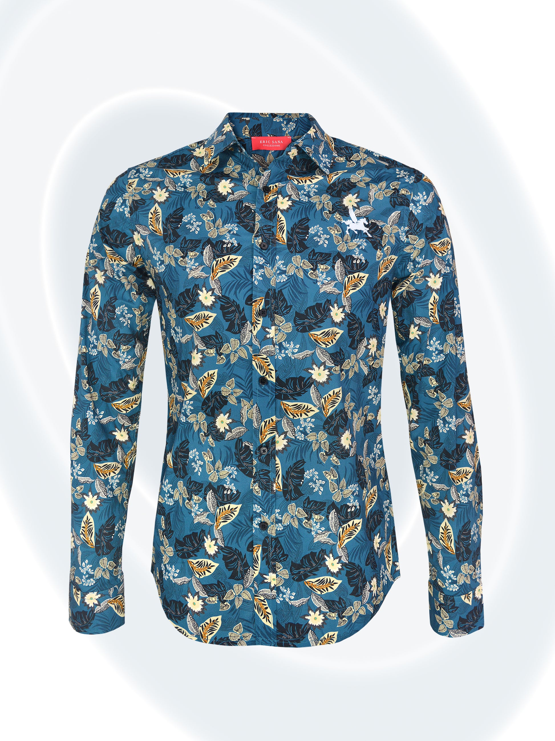 Add a touch of colour to your wardrobe with this beautifully detailed floral print shirt. Made with a blend of cotton and elastane, it provides comfort and stretch for all-day wear.