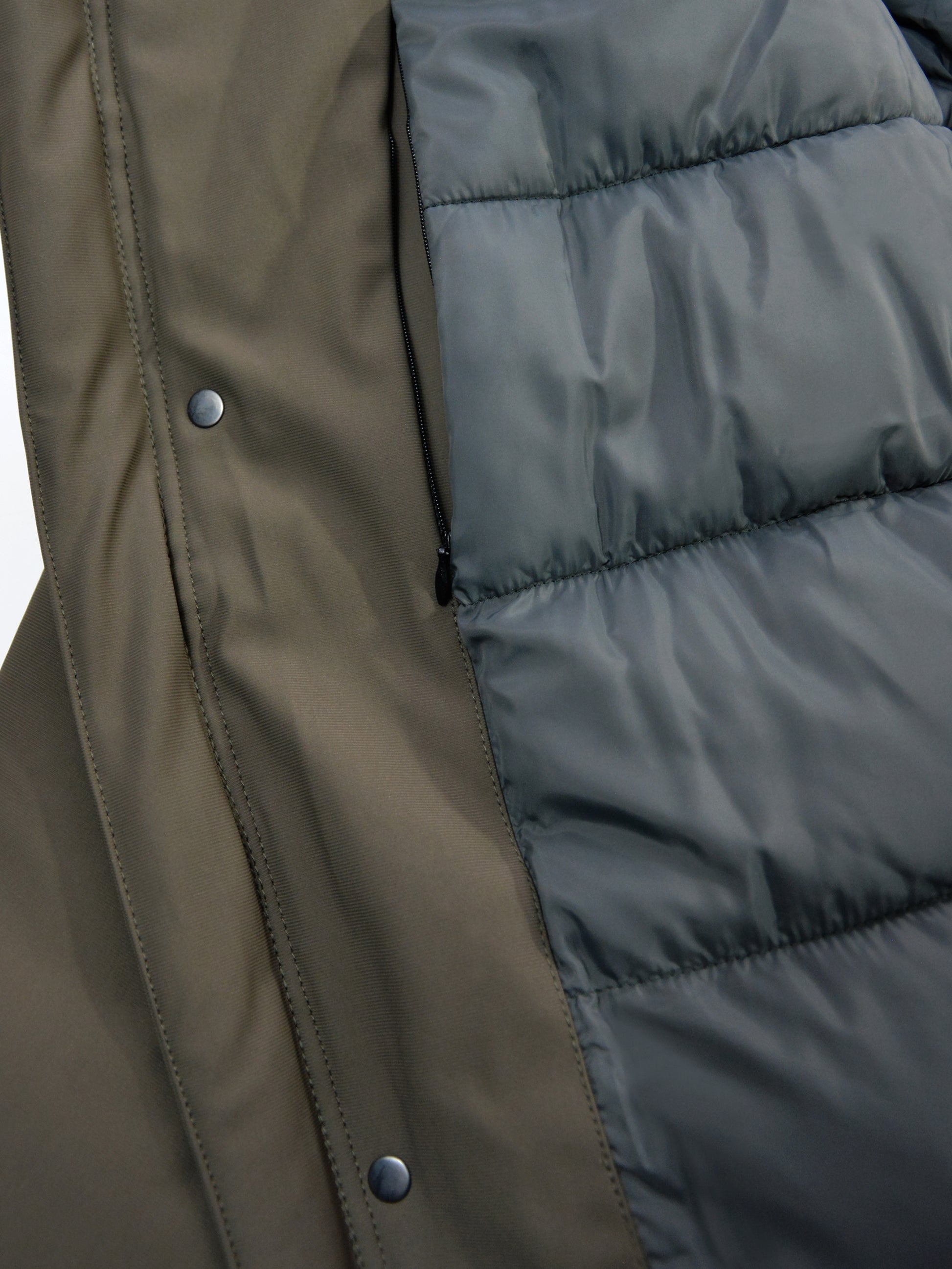 The Eric Sana long waterproof coat with Hoody is created with style and comfort in mind. Crafted with a five layer construction including a quilted vest, keeping in mind an active winter mindset this coat is created in a form fitting design and we recommend to size up. Enjoy active days and leisure days in this upscale six way stretch garment curated to elevate your winter wardrobe.