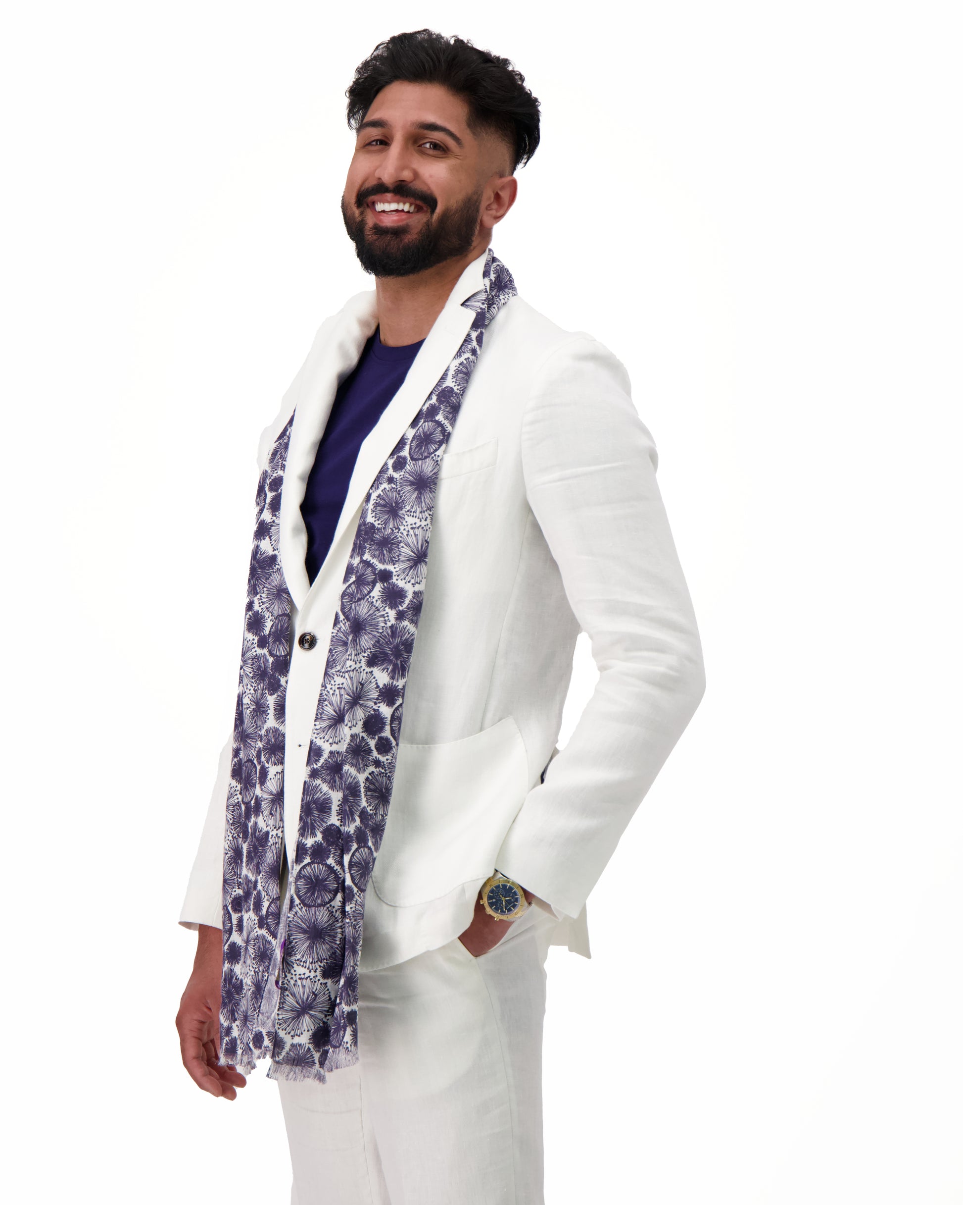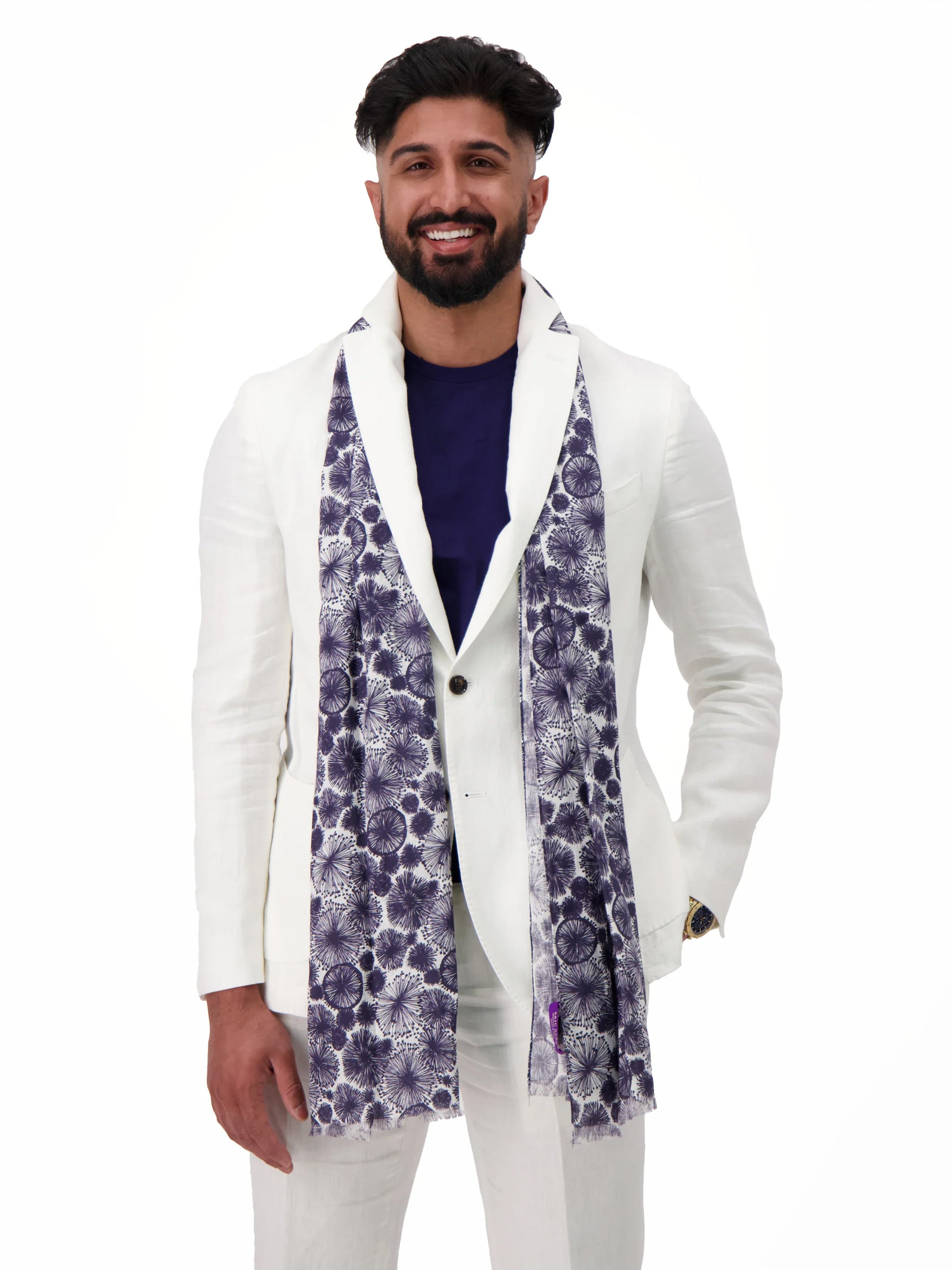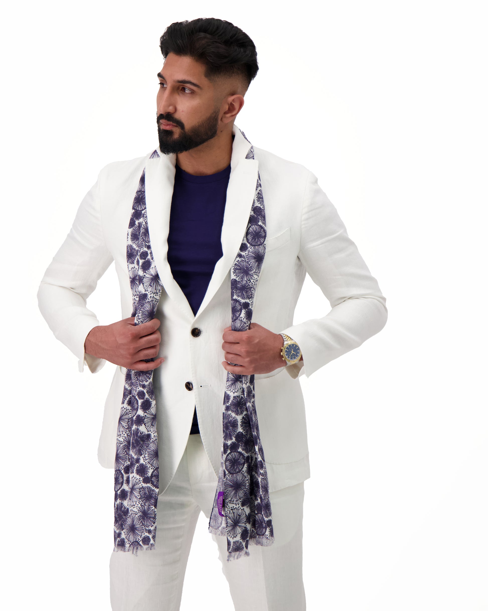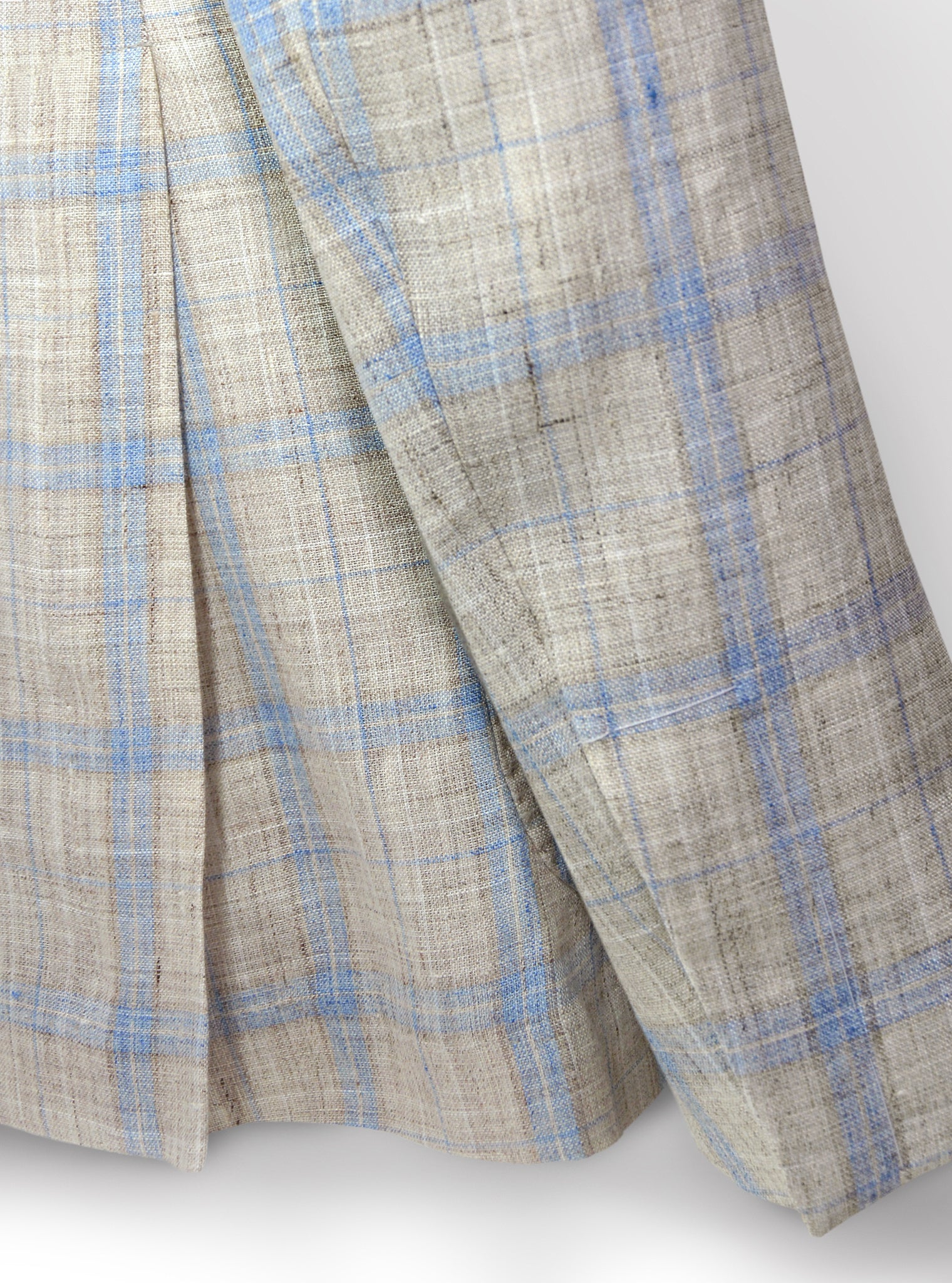 The All-White Suit Exudes Timeless Elegance, Making It A Versatile Choice For A Range Of Occasions From Formal Gatherings To Summer Events. While The Subtle Light Blue Plaid Design Adds A Contemporary Twist To The Classic White Linen Suit, Making It A Versatile Choice For Both Formal And Semi-Formal Occasions.