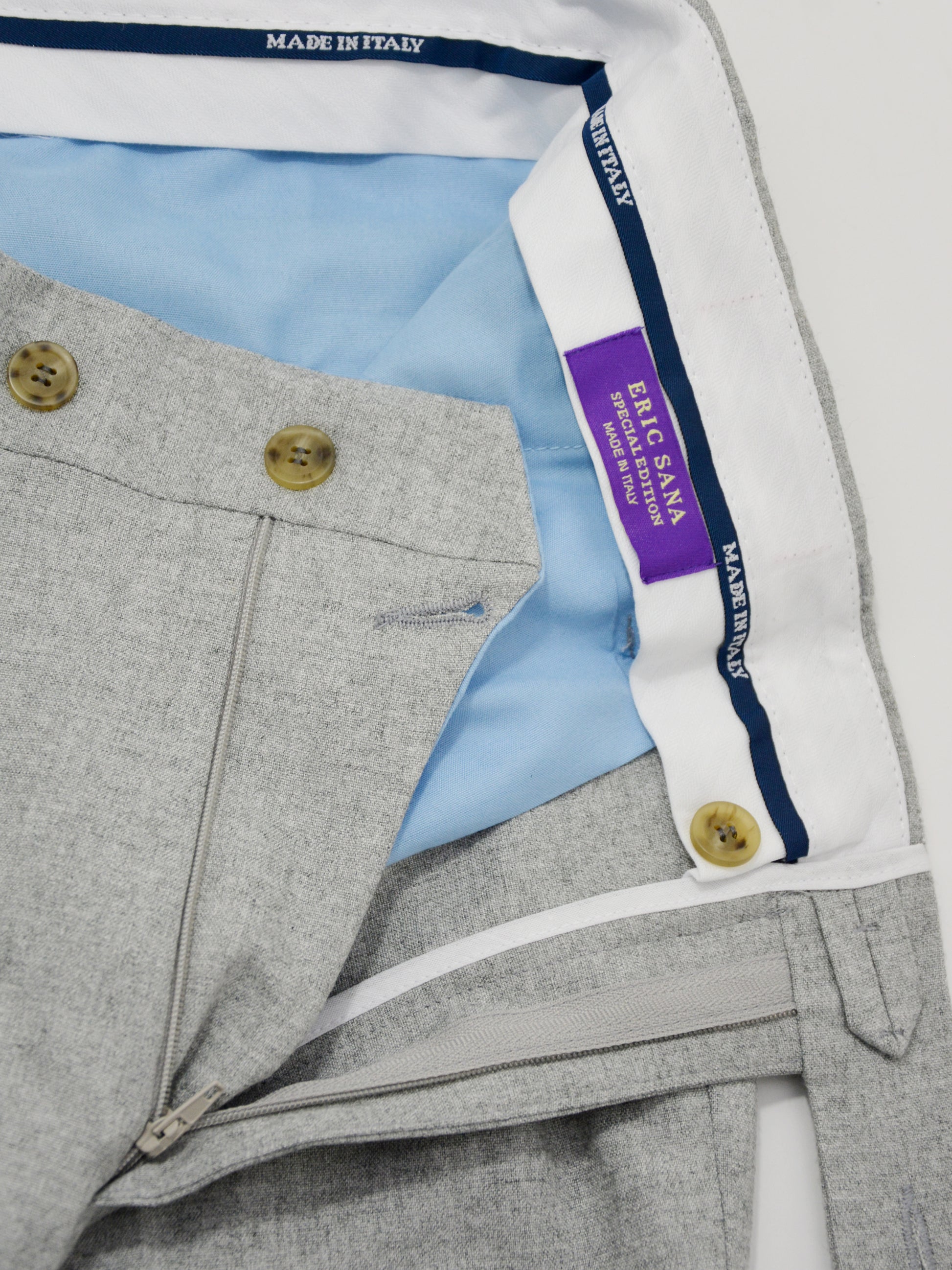 The flat-front silhouette, slanted side pockets, and buttoned welt back pockets deliver a polished, formal aesthetic suitable for both professional and smart-casual environments. Precisely finished hems and thoughtful construction details reflect authentic Italian sartorial craftsmanship.
