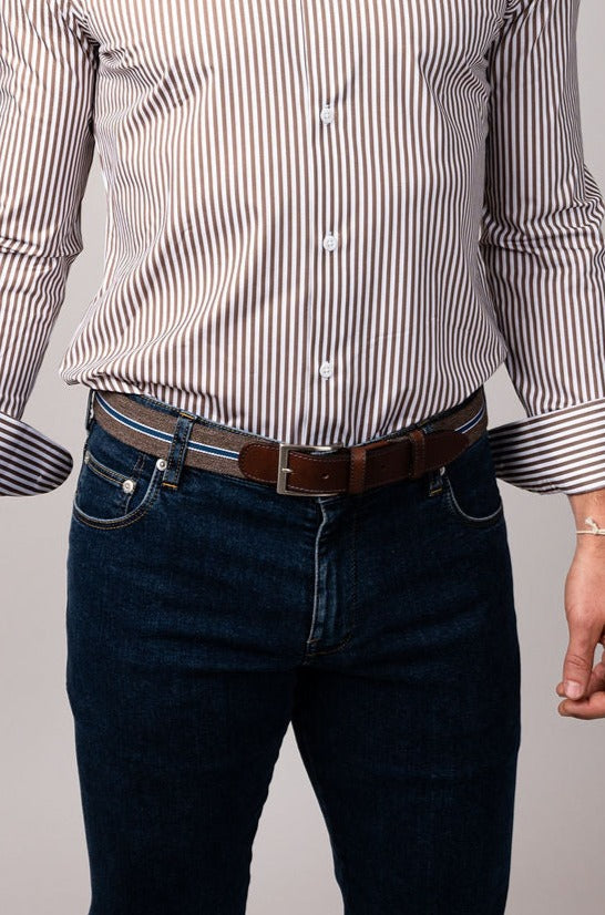 Made from high-quality leather, the Stretch Fabric Belt combines durability and elasticity for a belt that moves with you. The carefully chosen blend of tones creates a visually appealing accessory that complements a wide range of clothing choices.